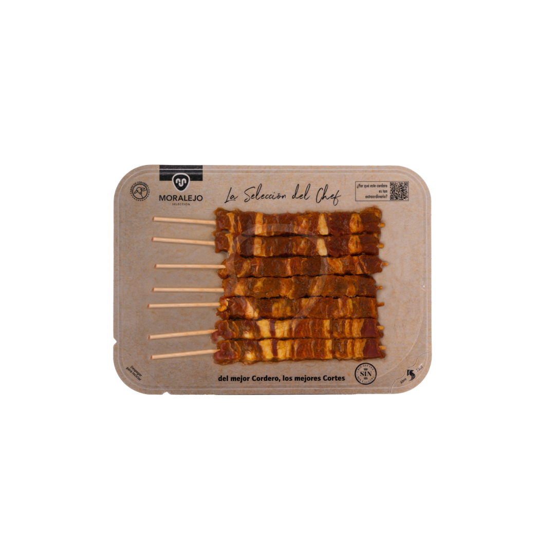 Skewered lamb with Ras al Hanout in flat skin format.
